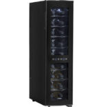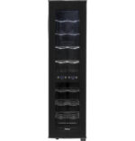 This 18-bottle, dual-zone wine cellar offers a perfect solution for wine storage with its sleek and modern design. The vibration-free, ultra-quiet thermoelectric cooling system ensures your wines are stored in optimal conditions without the disturbances of traditional compressors. The wine cellar features a curved door with smoked glass and black trim, adding an elegant touch to any space. With dual touchscreen controls and two LED displays, you can easily set the temperature for both compartments, with an independent range of 54-66°F for the upper section and 42-66°F for the lower section, making it ideal for storing both red and white wines at their perfect temperatures.The soft interior lighting not only enhances the aesthetic but also allows for easy organization and viewing of your wine collection. With seven full-width chrome storage racks, this wine cellar maximizes storage space while keeping your bottles organized and easily accessible. Its compact design makes it an ideal addition to any home, fitting into smaller spaces without compromising on functionality. Additionally, this wine cellar is energy-efficient, ensuring low power consumption while providing reliable cooling for your wine collection.