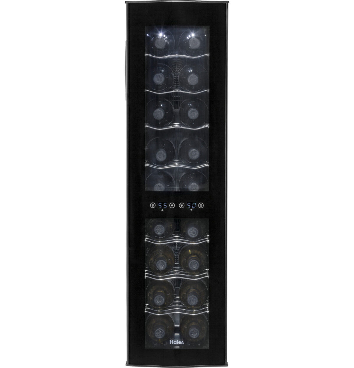 This 18-bottle, dual-zone wine cellar offers a perfect solution for wine storage with its sleek and modern design. The vibration-free, ultra-quiet thermoelectric cooling system ensures your wines are stored in optimal conditions without the disturbances of traditional compressors. The wine cellar features a curved door with smoked glass and black trim, adding an elegant touch to any space. With dual touchscreen controls and two LED displays, you can easily set the temperature for both compartments, with an independent range of 54-66°F for the upper section and 42-66°F for the lower section, making it ideal for storing both red and white wines at their perfect temperatures.The soft interior lighting not only enhances the aesthetic but also allows for easy organization and viewing of your wine collection. With seven full-width chrome storage racks, this wine cellar maximizes storage space while keeping your bottles organized and easily accessible. Its compact design makes it an ideal addition to any home, fitting into smaller spaces without compromising on functionality. Additionally, this wine cellar is energy-efficient, ensuring low power consumption while providing reliable cooling for your wine collection.
