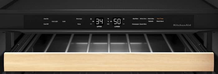 The 24″ Beverage Center with Glass Door and Wood-Front Racks offers convenient storage for up to 14 wine bottles and additional space for drinks and food. It features two temperature-controlled zones, one for wine (42–64°F) and one for beverages (33–40°F), and includes a Temperature Monitoring System with alerts for temperature changes. The Motion-Activated LED Lighting provides visibility without opening the door. With a 4.8 cu. ft. capacity, it has two racks for wine and full-width shelves for drinks and snacks. The unit includes a door alarm, Backlit Touch Controls, Sabbath Mode, Max Cool, and Automatic Defrost. Designed for fully flush installation, it blends seamlessly with cabinetry.