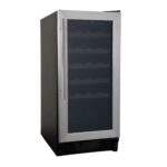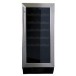 The 26-Bottle Built-In Wine Cellar is a perfect blend of style, innovation, and practicality, designed to elevate your wine storage experience. This sleek and sophisticated wine cooler offers ample space for up to 26 bottles, seamlessly integrating into your home or bar while maintaining the ideal conditions for preserving the rich flavors and aromas of your wine. With advanced cooling technology and electronic temperature control, it allows precise regulation for both red and white wines. The smooth glide-out chrome racks with wood trim offer convenience and luxury, while the double-pane glass door with a blue-gray tint and brushed aluminum trim enhances its aesthetic appeal and protects your wine from harmful UV rays. Whether you are a connoisseur or a casual enthusiast, this wine cellar brings both elegance and precision to your storage needs, ensuring your collection is kept in optimal conditions.