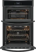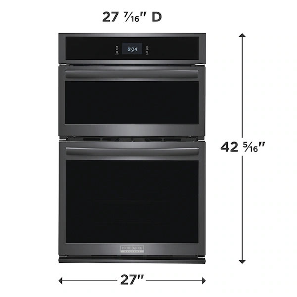 The 27″ Electric Wall Oven and Microwave Combination with 15+ Ways To Cook offers unmatched versatility, combining multiple cooking functions in one sleek appliance. It features advanced modes like Air Fry, No Preheat, Slow Cook, Steam Bake, Convection Roast, Air Sous Vide, Bread Proof, Dehydrate, and more, allowing you to prepare a variety of meals with ease. No Preheat saves time by letting you cook without waiting for the oven to heat, while Air Fry provides healthier options without sacrificing taste. Steam Bake and Steam Roast ensure baked goods and meats are perfectly moist and flavorful. The built-in temperature probe alerts you when your food reaches the ideal temperature. With a responsive 4.3-inch full-color touchscreen, smudge-resistant black stainless steel finish, and easy-clean steam or self-clean cycles, this oven blends performance, convenience, and modern style for your kitchen.