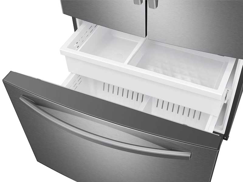 - This 3-Door French Door refrigerator is beautifully designed, with sleek-edged doors, and EZ-Open Handle.™ The clean lines and modern form blend beautifully into your kitchen while the fingerprint resistant finish withstands veryday smudges.