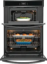 The 30″ Electric Wall Oven and Microwave Combination with Total Convection offers exceptional versatility, featuring over 15 cooking modes like Air Fry, No Preheat, Slow Cook, Convection Bake, Steam Bake, Convection Roast, Steam Roast, Air Sous Vide, Bread Proof, and Dehydrate. The No Preheat option saves time, allowing you to cook immediately without waiting for the oven to heat. Slow Cook ensures food cooks slowly, locking in moisture and flavor. The extra-large 5.3 cu. ft. oven capacity lets you cook more at once, while the premium Glide Rack makes it easy to access your food. With a 4.3-inch full-color touch screen, self and steam clean cycles, and a smudge-proof black stainless steel finish, this oven combines sleek design, advanced technology, and effortless cleaning for the ultimate cooking experience.