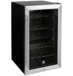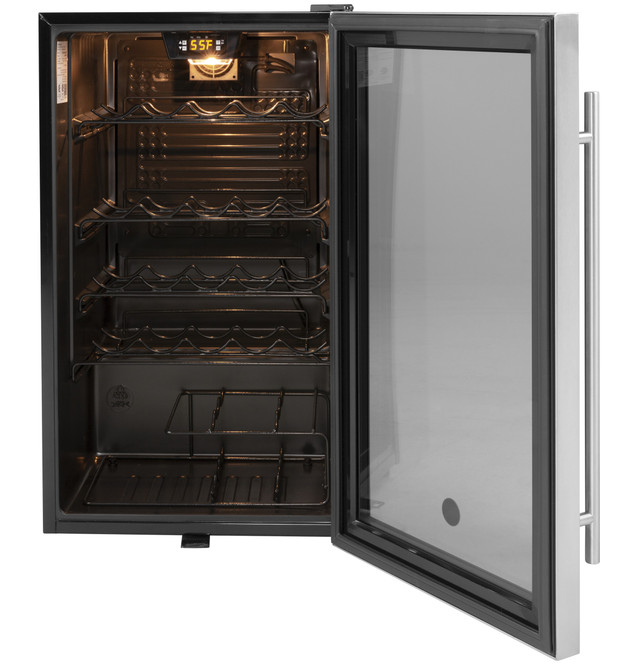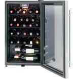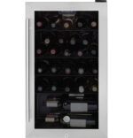 This 30-bottle wine cooler offers 4.1 cu. ft. of storage, making it ideal for wine enthusiasts looking to keep their collection organized and easily accessible. The sleek stainless steel door, paired with a large glass window, lets you showcase your wine while maintaining visibility. Inside, five contoured racks securely hold each bottle, ensuring safe storage. The electronic controls allow for easy temperature adjustments between 41ºF and 61ºF, creating the perfect environment for preserving your wine’s quality. Whether you enjoy red, white, or sparkling wines, this cooler can accommodate them all. Its modern design and efficient functionality make it a perfect choice for anyone looking to store their wine at the ideal temperature and display it stylishly.