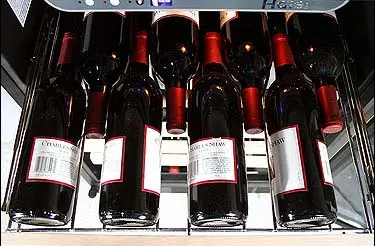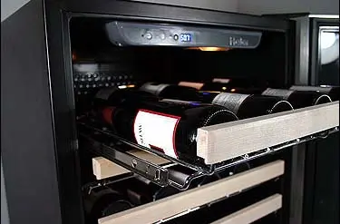The 50 Bottle Black Built-in Wine Refrigerator offers a sleek and efficient solution for wine storage. It features six slide-out chrome racks with unstained wood shelf fronts, providing organized horizontal storage for up to 50 bottles, keeping corks properly moist. The black cabinet and reversible blue-gray tinted glass door with black trim deliver a modern, versatile look that complements any space. Designed for both built-in and freestanding use, the full-view glass door opens 90 degrees for easy access to your collection. An advanced electronic LED display allows precise temperature control, with preset options for both red and white wines. The electronic thermostat ensures consistent cooling to preserve wine quality, while the slide-out racks make bottle organization simple. Combining sophisticated design with functionality, this wine refrigerator is ideal for maintaining and showcasing your wine collection in style.