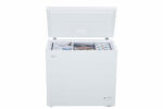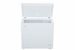 7.0 cu. ft. Chest Freezer in White offers extra storage for bulk frozen items, making it ideal for basements, kitchens, or garages. Despite its compact design, it provides a generous 7.0 cu. ft. (197 L) of freezer space, perfect for small families or couples. This freezer is garage ready, performing efficiently in temperatures ranging from 0°F to 110°F (-17°C to 43°C). The foam-insulated cabinet and lid maintain internal temperatures, minimizing energy consumption. It features a front-mounted mechanical thermostat for easy control and a front drain for quick defrosting. The interior is designed for easy cleaning, while two rear rollers make it easy to move. A wire storage basket helps organize smaller, frequently used items, keeping your frozen foods neatly stored and easily accessible.